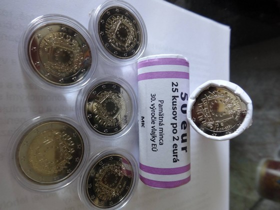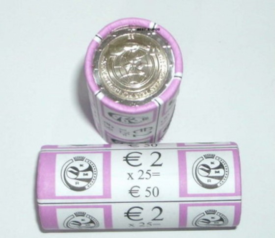 Des petits malins mettent en vente des rouleaux de pièces de 2 € commémoratives belges dédiées à l'année européenne pour le développement.