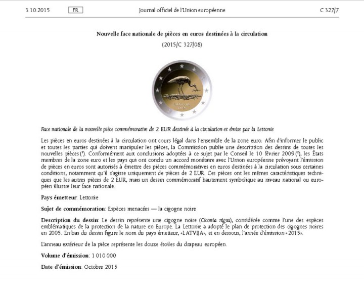 Le texte sur le forum :[Commémo] 2€ 2015 Cigogne