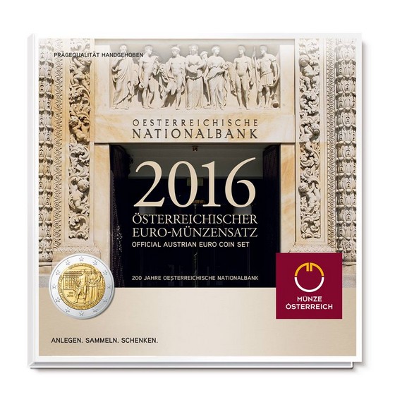 Autriche : le BU avec la nouvelle 2 € commémorative dédiée aux 200 ans de la banque nationale.