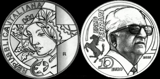Sortie en 2016 d'une pièce de 10 € dédiée à Enzo Ferrari.