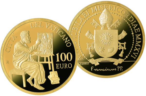 La pièce d'or de 100 euros pour 2016 est dédiée à Saint Luc l'évangéliste.