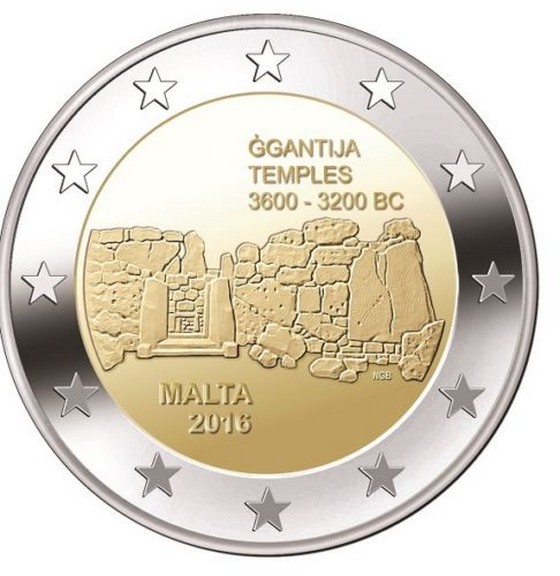 Confirmation du visuel de la 2 € dans la série des sites préhistoriques de Malte, le Temple de Ggantija.