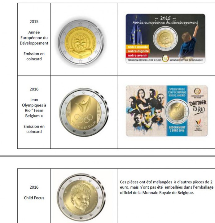 Suite à des annonces de vente de rouleaux des dernières émissions de 2 € commémoratives, la banque de Belgique précise quelles pièces sont sorties en rouleaux ou non.