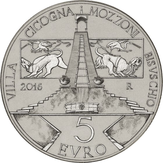 Présentation officielle de la pièce de 5 € dédiée aux villas et jardins d'Italie: jardin dans le nord de la Lombardie.
