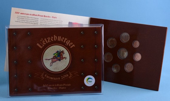 Emission par la poste luxembourgeoise d'un coffret avec timbre sur le thème des 500 ans de la route postale Bruxelles - Naples.