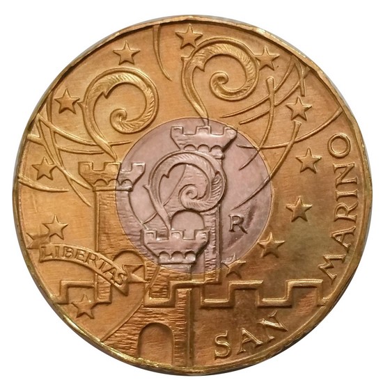 Nouveauté pour San marin avec l'émission d'une pièce de 5 € bimétallique.