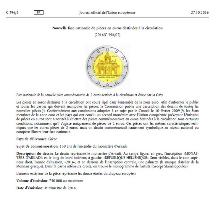 Re: [commémo] 2016 2 € Monastère d'Arkadi.