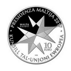 Pièce de 10 € dédiée à la présidence Maltaise du Conseil de l'Union Européenne.