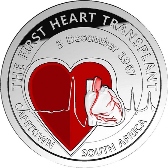 Sortie en 2017 d'une pièce de 5 € dédiée aux 50 ans de la transplantation cardiaque.