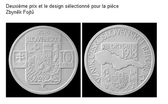 Résultat du concours pour une pièce de 10 € dédiée aux 100 ans de la république de Tchécoslovaquie.
