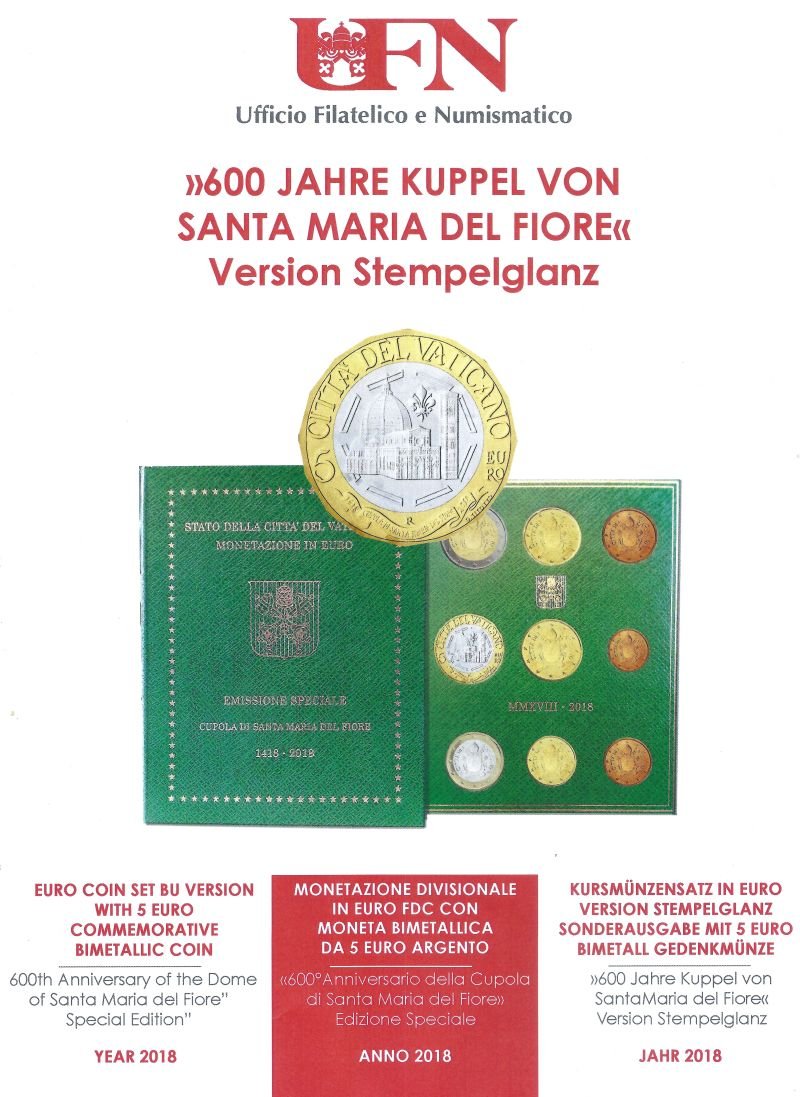 BU avec pièce bimétallique de 5 euros «600e anniversaire du Dôme de Santa Maria del Fiore»