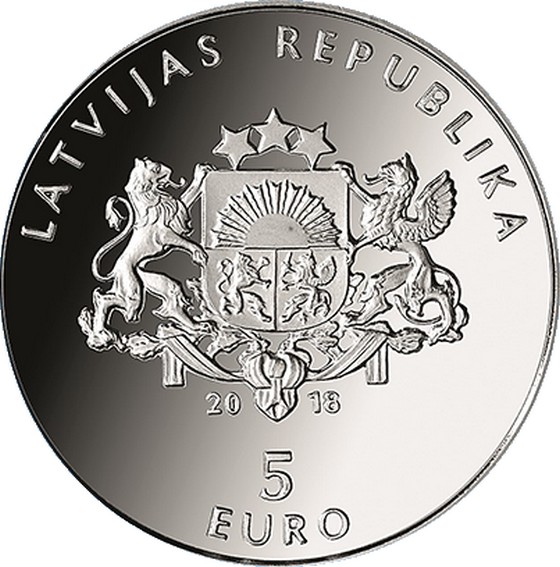 A l'automne prochain sortira une pièce de 5 € dédiée aux symboles héraldiques de l'État de Lettonie et à leur histoire.