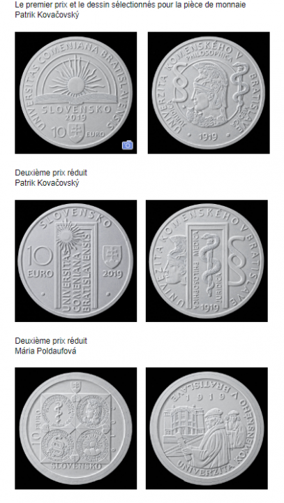 Résultat du concours pour la 10 € commémorant le 100e anniversaire de l'Université Comenius de Bratislava.