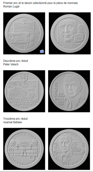 Résultat du concours pour la 10 € commémorant le 150e anniversaire de la naissance de Michal Bosák.