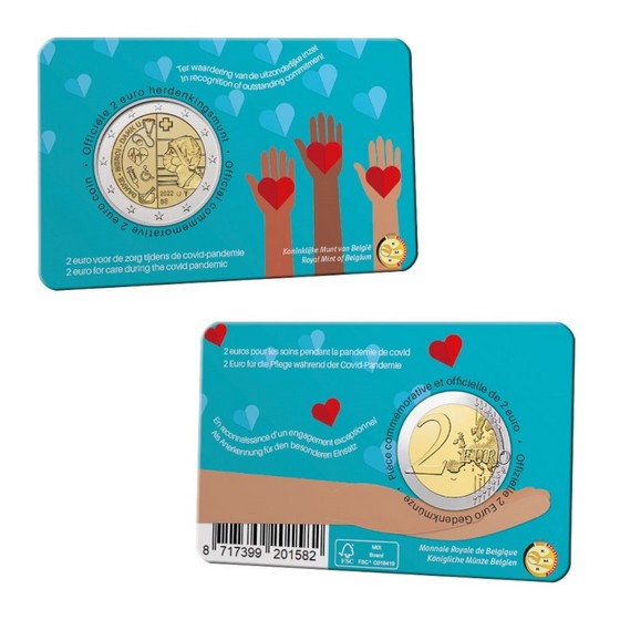 2€ commémorative , hommage au personnel soignant BE et coincard