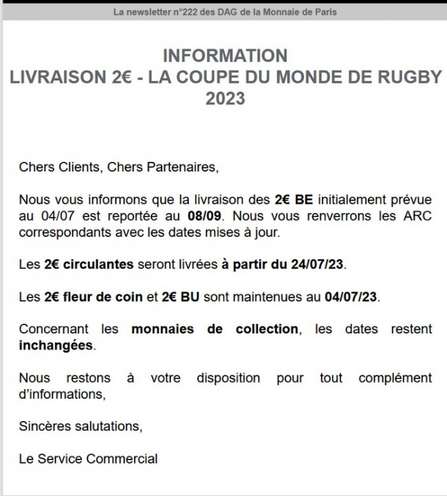 2€ coupe du monde de rugby, date de si=ortuie modifiée